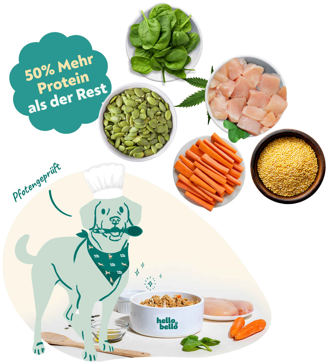 Ersetze 30% des aktuellen Futters deines Hundes durch HelloBello Vollwertnahrung.