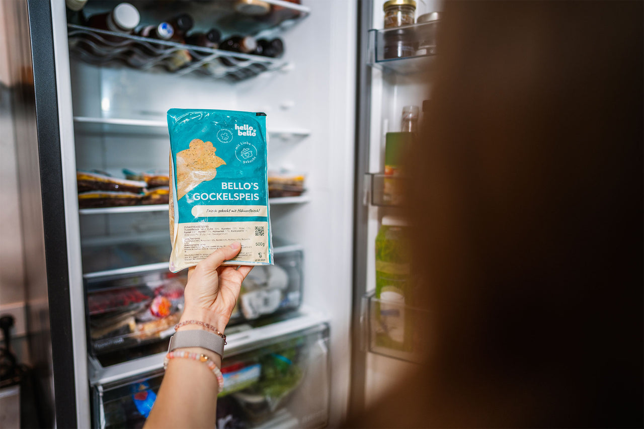 HelloBello bringt die frisch gekochten Mahlzeiten tiefgefroren vor deine Haustür. Wir übernehmen die Versandkosten. Dank flexiblem Abo hast du alles im Griff und immer genug Futter für deinen Liebling zuhause.