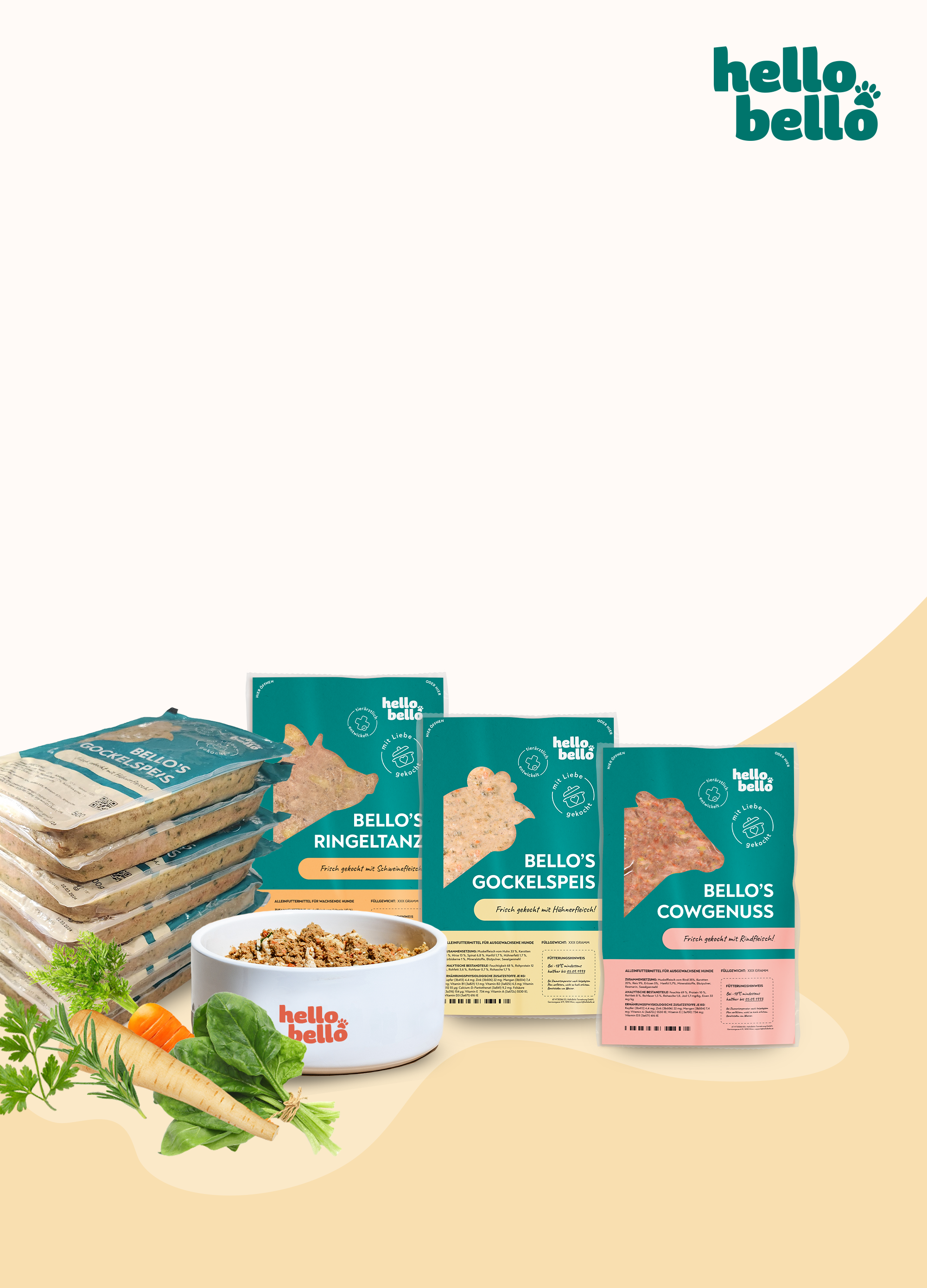 Alles über Mischlingshunde! Mischlingshunde erfreuen sich seit jeher großer Beliebtheit: Sie sind robust, vielfach gesund und haben einen ganz eigenen Charme. Dennoch werden sie oft unterschätzt, wenn es um ihre spezifischen Ernährungsanforderungen geht. Ein passendes Mischlings Futter soll nicht nur satt machen, sondern die Vitalität, ein glänzendes Fell und das Wohlbefinden nachhaltig fördern. In diesem Artikel gehen wir daher gezielt auf die Besonderheiten von Mischlingen ein und zeigen dir, warum HelloBello Frischfutter als perfekte Ernährungslösung punktet. Und warum ist HelloBello Frischfutter die perfekte Lösung? Die Antwort liegt in einer hochwertigen, leicht verdaulichen und nährstoffreichen Nahrung. In diesem Blog erfährst du, warum HelloBello Frischfutter die perfekte Wahl als Mischlings Futter ist. Es kombiniert frische, regionale Zutaten mit einer maßgeschneiderten Zubereitung, um deinem Mischling genau das zu geben, was er für ein aktives und gesundes Leben braucht. Entdecke, warum gesundes, maßgeschneidertes Mischlings Futter den Unterschied macht! Teste HelloBello und spare 30 % auf deine erste Lieferung! Herkunft und Geschichte Mischlingshunde existieren praktisch so lange, wie Menschen Hunde domestizieren. Schon in der Antike vermischten sich lokale Hüte- und Wachhunde unterschiedlicher Herkunft, um die besten Einsatz- und Überlebensqualitäten zu kombinieren. Neuzeit: Mit der Etablierung reiner Rassen im 19. Jahrhundert verloren Mischlinge kurzzeitig an Bedeutung. Heute aber feiern sie ein Comeback als gesunde, oft unempfindliche Familienhunde. Mittelalter: Im Europa des Mittelalters waren Mischlinge häufig Arbeitshunde auf Bauernhöfen. Die Kreuzung zwischen Schäfer- und Jagdhunden ergab robuste Allrounder. Frühe Zucht: Forscher fanden in Ausgrabungen Darstellungen von Hunden mit heterogener Fellzeichnung, die darauf hinweisen, dass Menschen bereits vor über 4.000 Jahren gezielt Hunde verschiedener Arten paarten (z. B. Ägyptische Hütehunde × Wüstenwindhunde). Aussehen und Variationen Mischlingshunde lassen sich grob nach ihrem Ursprung und Verwendungszweck in verschiedene Gruppen einteilen. Klassiker sind Designer‑Mixe wie Goldendoodle oder Labradoodle, traditionelle Arbeitermischlinge etwa Schäferhund‑Rottweiler‑Kreuzungen, kompakte Begleiter‑Mixe für die Wohnung (z. B. Cavapoo) sowie robuste Straßen- und Hofmischlinge. Jeder Typ bringt individuelle Vor‑ und Nachteile in Bezug auf Temperament, Größe und Pflegeaufwand mit. 1. Designer‑Mixe Diese gezielt gezüchteten Hybridrassen kombinieren häufig einen Pudel (für hypoallergenes Fell) mit populären Familienhunden. Cavapoo (Cavalier King Charles Spaniel × Pudel): Kompakter Familienhund, gezielt in Australien gezüchtet Goldendoodle (Golden Retriever × Pudel): Beliebt seit den 1990er Jahren, gilt als besonders kinderfreundlich und intelligent. Labradoodle (Labrador Retriever × Pudel): Ursprung in Australien der 1980er, geschaffen als allergikerfreundlicher Blindenführhund. Bernedoodle (Berner Sennenhund × Pudel): Erst 2003 eingeführt, vereint die Gutmütigkeit des Berner Sennenhunds mit der Intelligenz des Pudels. 2. Arbeitermischlinge Traditionelle Allrounder, die auf Höfen und in der Jagd eingesetzt wurden, heute geschätzt für ihre Robustheit und Lernbereitschaft. Eurohound (Alaskan Husky × Deutsch Kurzhaar): Speziell für Schlittenhunderennen gezüchtet, verbindet Ausdauer mit Schnelligkeit Schäfer‑Rottweiler‑Mix: Kombination aus Hüte‑ und Schutzhund, ideal für Familien mit hohem Sicherheitsbedürfnis. King Shepherd (Deutscher Schäferhund × Shiloh Shepherd): Groß und gelehrig, stärker gebaut als klassische Schäferhunde. 3. Kleine Begleiter‑Mixe Für Stadtwohnungen geeignet und meist unter 10 kg, lebhaft und anschmiegsam. Pomchi (Pomeranian × Chihuahua): Winziger Kläffer mit großem Selbstbewusstsein Cavachon (Bichon Frisé × Cavalier King Charles Spaniel): Freundlich, pflegeleichtes Fell. Chiweenie (Chihuahua × Dackel): Quirliger Charakter, klein und wachsam. 4. Hüte‑ und Wachhund‑Mixe Diese Kreuzungen vereinen Instinkte mehrerer stämmiger Rassen und eignen sich als Wachhunde oder für ländliche Familien. Texas Heeler (Australian Cattle Dog × Border Collie/Australian Shepherd): Extrem arbeitsfreudig, braucht viel Auslauf. Sheepadoodle (Old English Sheepdog × Pudel): Sanftmütig und wachsam, mittlere bis große Größe. Gerberian Shepsky (Deutscher Schäferhund × Siberian Husky): Kombination aus Treue des Schäferhunds und Temperament des Huskys. 5. Jagd- und Sportmischlinge Gezüchtet für besondere Jagd- oder Sportaufgaben: Springador (English Springer Spaniel × Labrador Retriever): Passionierter Apportierer im Feld. Greyster (Deutsch Kurzhaar × Greyhound): Entwickelt für Schlittenhund‑Trockenrennen und Canicross. 6. Hof‑ und Straßenmischlinge Ohne gezielte Zuchtlinie, aber hoch anpassungsfähig und oft gesundheitsrobust: Farm‑Mixe: Entstanden durch generationsübergreifende Paarungen verschiedener Gebrauchshunde, meist unauffällig im Aussehen, aber vielseitig einsetzbar. Lokale „Straßenhunde“: In vielen Ländern vermitteln Tierheime oft solche Mischlinge als dankbare Familienhunde. Mischlings Futter: Warum hat der Mischling besondere Ernährungsbedürfnisse? Warum Mischlings Futter genau angepasst werden sollte Mischlingshunde zeichnen sich durch eine besonders hohe genetische Vielfalt aus. Diese Vielfalt wirkt sich nicht nur auf ihr Aussehen und Verhalten aus, sondern beeinflusst maßgeblich auch ihre Verdauungs- und Stoffwechseleigenschaften. Ein Futter, das auf die typischen Bedürfnisse klar definierter Rassen ausgerichtet ist, greift hier oft zu kurz. Im Folgenden erläutern wir ausführlich, welche Faktoren den speziellen Futterbedarf von Mischlingen bedingen und warum HelloBello Frischfutter hier die optimale Lösung darstellt. 1. Heterogenes Erbgut und daraus resultierende Stoffwechselunterschiede Vielfälti