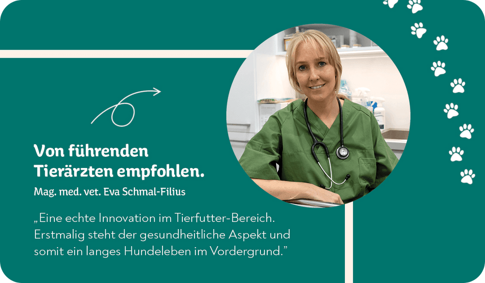 Alle unsere Sorten sind für Hunde ab der 8. Lebenswoche geeignet. Sollte dein Hund an einer schweren Erkrankung leiden, kannst du gerne mit unserer Tierärztin Barbara sprechen, um eine geeignete Lösung für deine Fellnase zu finden. Melde dich gerne für einen kostenlosen Beratungstermin bei uns.
