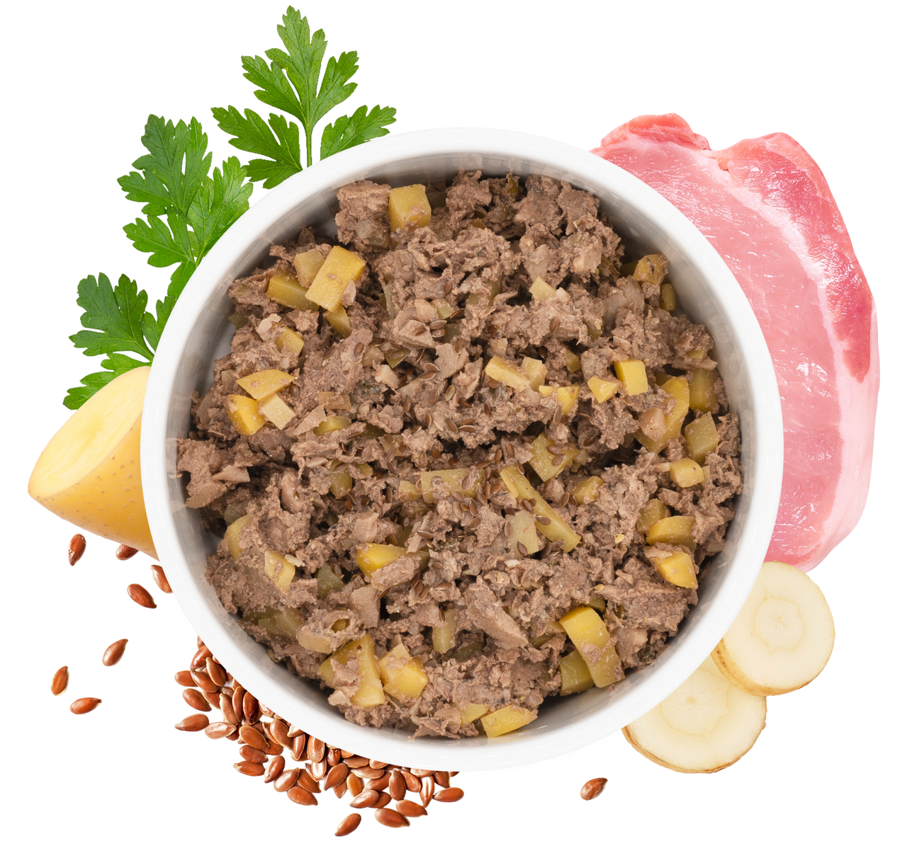 Schweinefleisch darf guten Gewissens im Hundenapf landen, wenn es auf mindestens 55°Celsius erhitzt wurde. All unsere Gerichte werden bei 90°C schonend gegart. Somit stellen wir sicher, dass schädliche Stoffe aus dem Futter entfernt werden, während die wichtigen Nährstoffe erhalten bleiben.